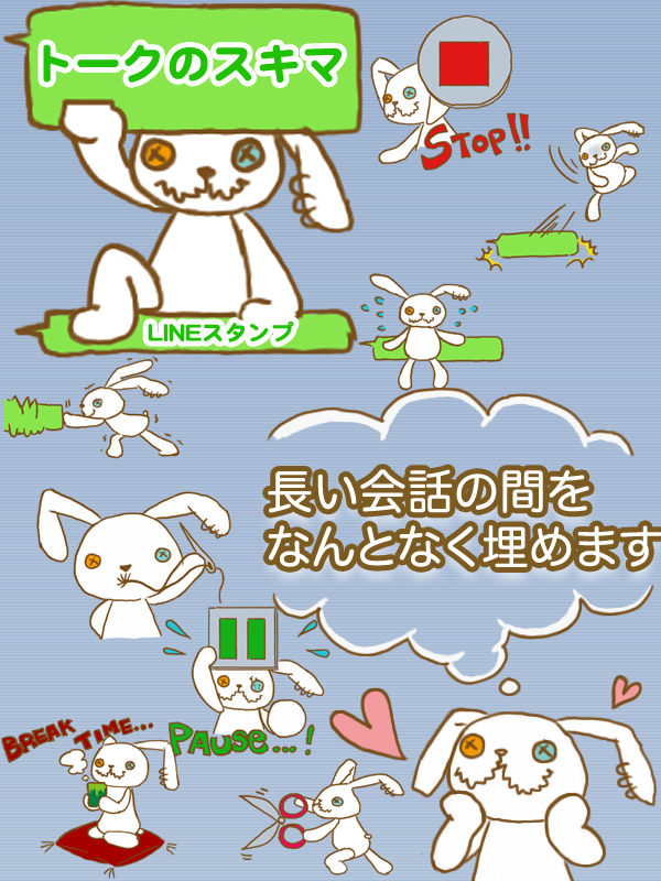 LINE向けスタンプの制作。個人で始めたものですが初期段階から参入していたため個別で依頼も頂いたりしました。
